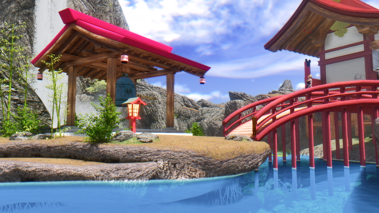 池のまわりが一気に充実してきました、朱塗りの橋ってのもいいですね。